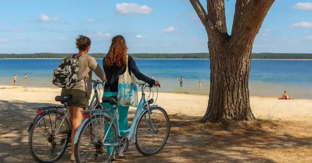 Tour du Lac : ≈ 57 km, facile, au cœur des pins et de la réserve naturelle.